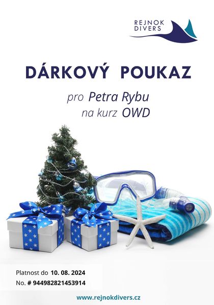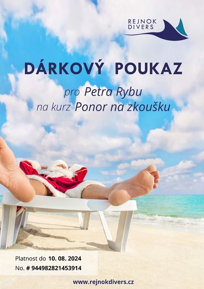 Hledáte ten perfektní dárek pro své blízké? Darujte jim dárkový poukaz! Dárkový poukaz je vždy dobrou volbou, protože obdarovaný si může vybrat, co si opravdu přeje. Naše dárkové poukazy jsou k dispozici ve vámi určené hodnotě, případně na konkrétní kurz tak, aby to vyhovovalo vašemu rozpočtu. Dárkový poukaz lze použít na nákup potápěčského kurzu nebo zboží u nás.